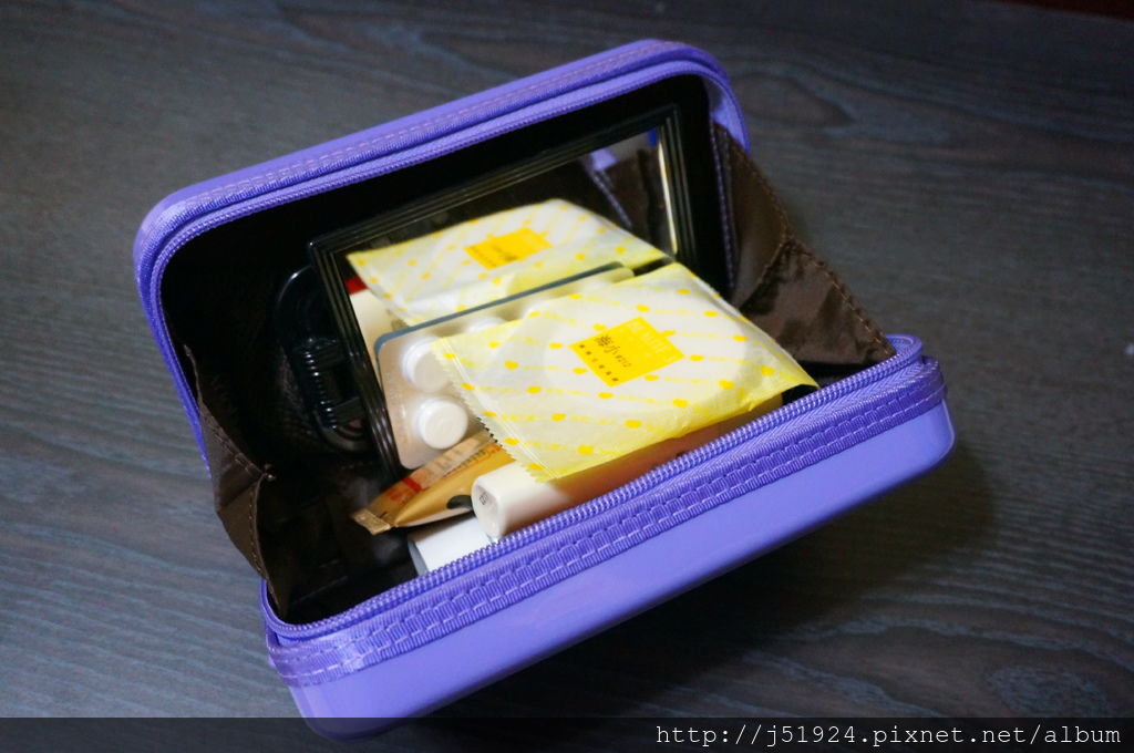 放到行李箱原本亂七八糟的化妝品~看起來整齊許多~
