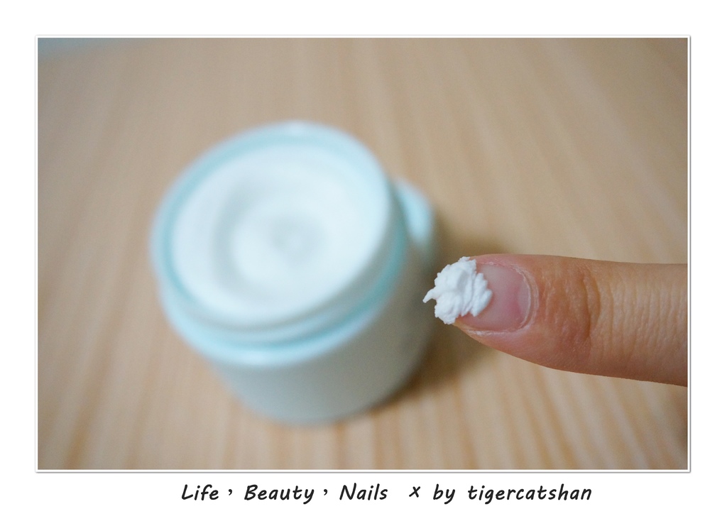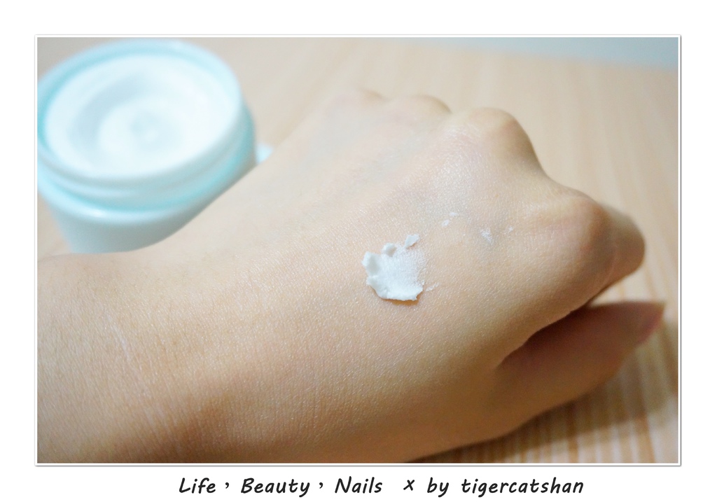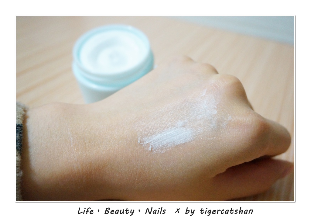 原先觸碰到肌膚的黏膩奶油觸感因臉部肌膚溫度加上按摩沒幾秒鐘就會慢慢融化,