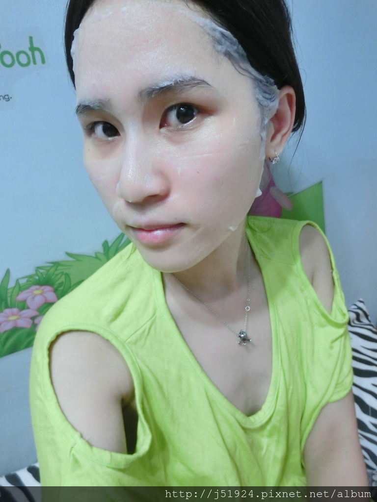 大概敷個15-20分鐘即可取下,再用指腹按壓使肌膚吸收殘餘的精華液,