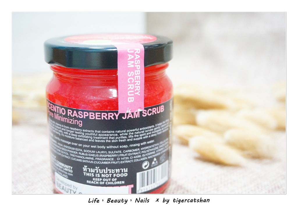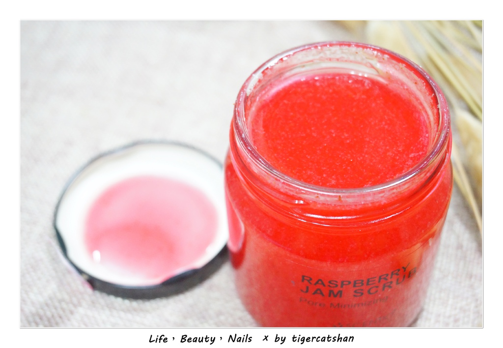 覆盆莓果醬緊緻身體去角質內的顆粒也很像被打算的果肉和籽,