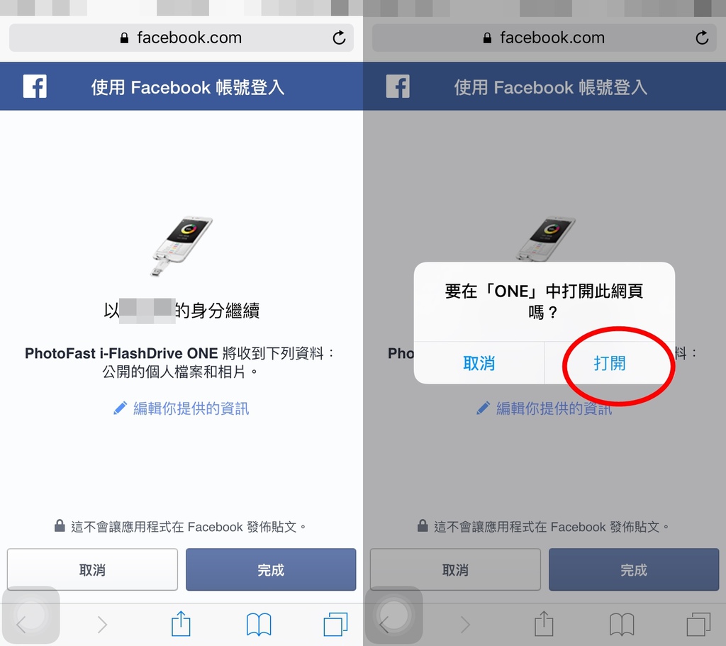 FB 的照片備份第一次需要先從FB登入授權才能使用唷
