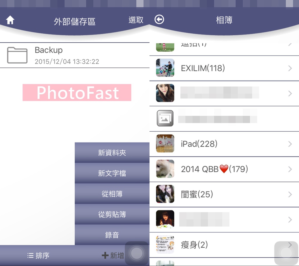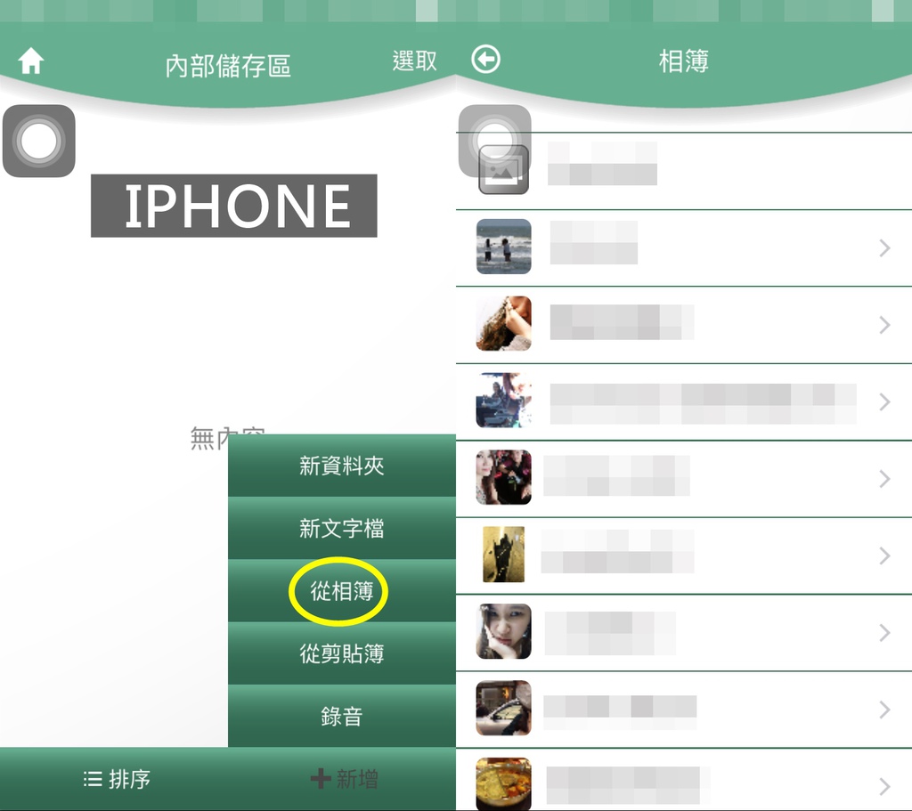 內外部的儲存空間皆可從相簿、剪貼簿存取資料,當然也可以在此新增資料夾、新文字檔或是ZIP都可選擇,