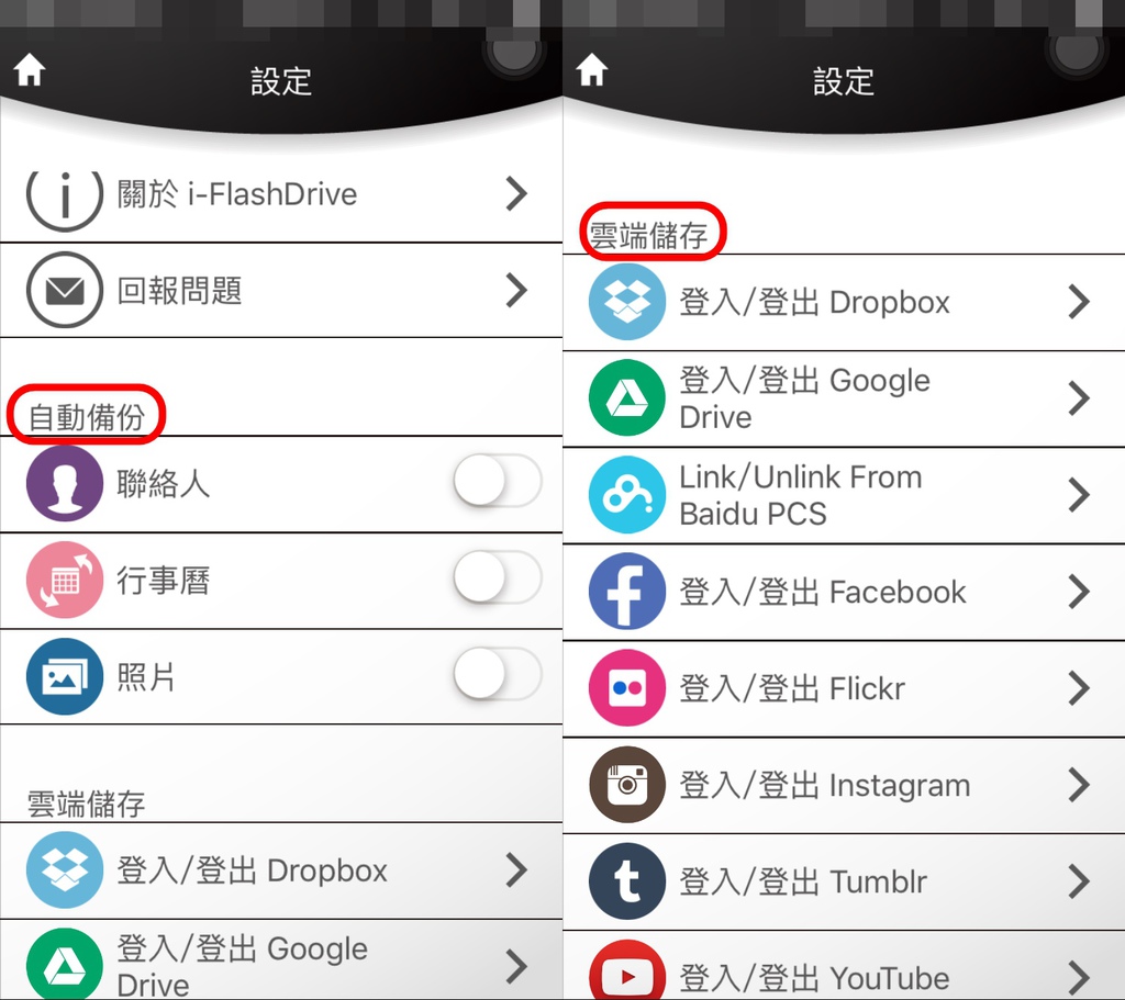 「雲端儲存」則是列出所有有支援的影音、社群軟體網站,