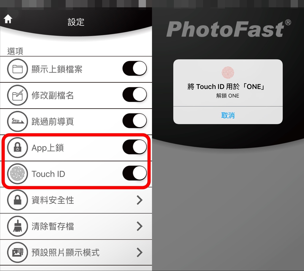 在i-FlashDrive ONEAPP的設定裡提供了APP上鎖的功能