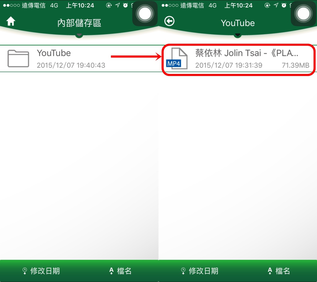 即可在「YouTube Playlist」和「內部儲存區」內看到這個影片喔!!!!!