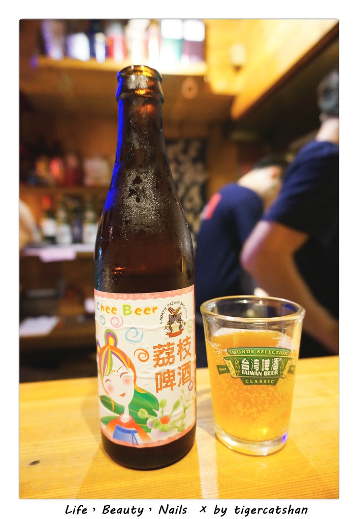 老闆幫我們選了台灣製造的荔枝啤酒和特調柚子酒