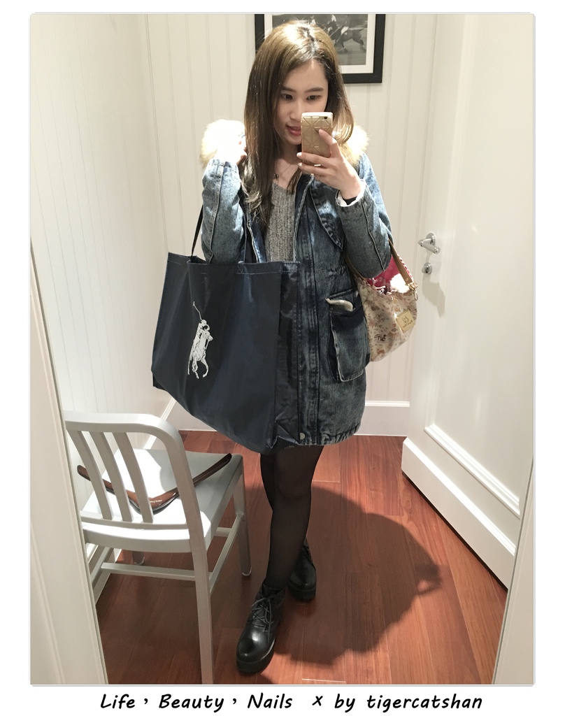 為了不要看起來太腫外套我選擇搭配輕薄羽絨衣(長版),不騙大家這樣看起來真的很顯瘦XD