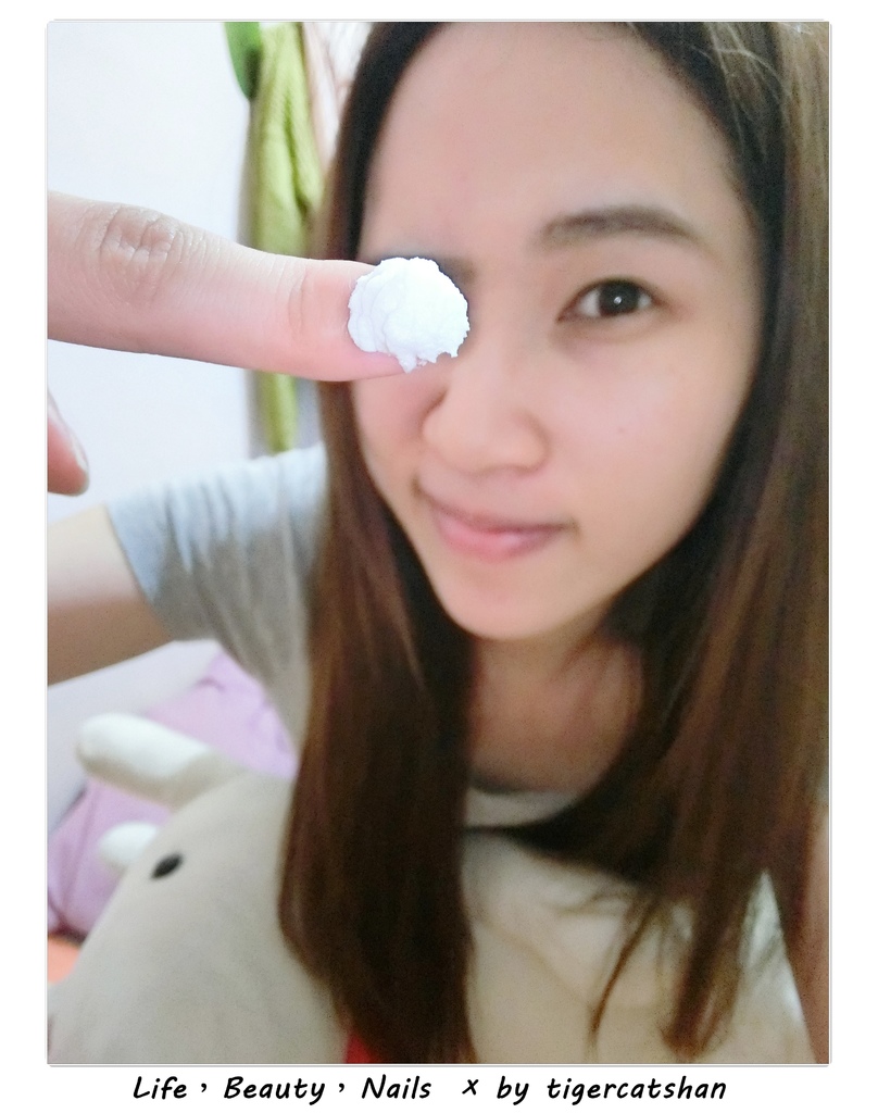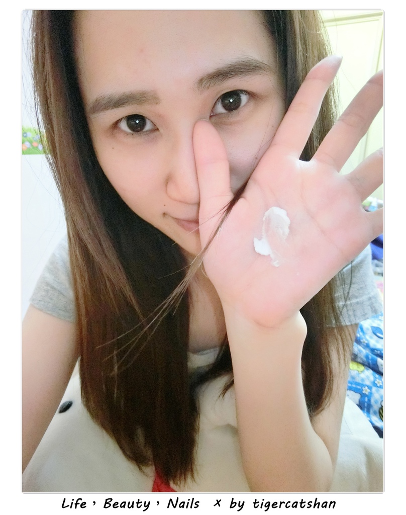 ▼先取出約1元硬幣大小的量在手上,稍微搓揉讓♥絲絨雪花霜♥融化