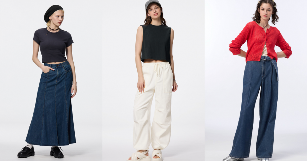 GU的輕型牛仔系列採用全新輕薄布料,即使在炎熱的春夏也能自在穿搭不悶熱。經典丹寧風格注入更多現代感設計,例如高腰剪裁、附腰帶的細節巧思,讓穿搭更有層次也更顯身形。特別推薦給小個子女孩,這系列每一件單品都能在「顯高」這件事上默默幫你加分。