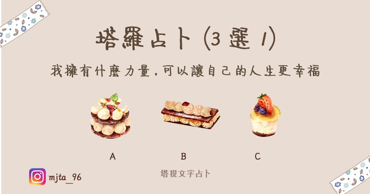 從下方選出最有感覺的選項,塔羅牌線上占卜題目:「我擁有什麼力量,可以讓自己的人生更幸福?」答案解析下滑看。