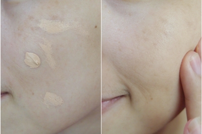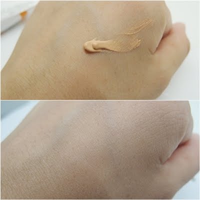 膚色的CC霜,帶有薄荷檸檬的清新香調,乳液質地的CC霜很容易推勻,塗抹完後臉上會有點亮粉感,在有光源的折射下臉部肌膚看起來更明亮,但在流汗過後臉上會變得油亮感。