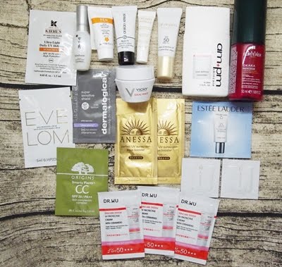 am+pm skincare RX10 胜肽極效防曬液、dermalogica 防禦修護高效防曬乳、DR.WU 高效舒緩防曬霜、Eve Lom 全天防護緊緻保濕乳、GIORGIO ARMANI 極緞絲柔平衡防曬精華、Kiehl's 集高效清爽UV防護乳、Okara 恆采修護液、REN 鮮果C亮采BB霜、安耐曬 金鑽高效防曬露、SUQQU 水感高效防護菁華、肌膚之鑰 無齡透白防曬乳、品木宣言 淨觀奇變美肌修護CC霜、雪花秀 滋晶雪瀅煥白精華、雅詩蘭黛 極淨光透白修護隔離乳、嬌蘭 蘭鑽肌因白金全效隔離霜、薇姿 淨膚透白密集修護水面膜