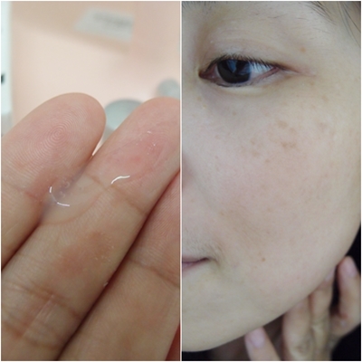透明的凝露狀,味道是漢方的中藥味,推勻後會呈現水潤感。