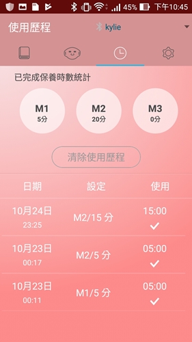 APP上會記錄使用每種模式的歷程時間,建議使用28天就要休息