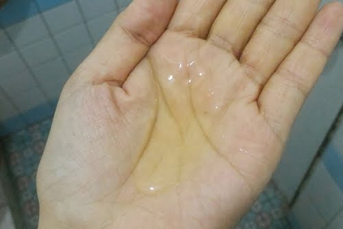 透明淡黃色的玫瑰精油洗髮露,一打開瓶蓋就能聞到濃郁的玫瑰精油味。