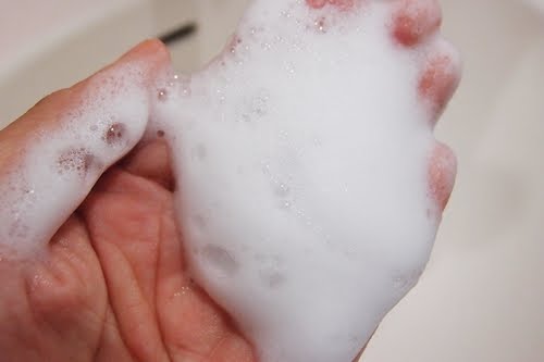 在打濕的頭髮上抹上洗髮露,採用的是天然玉米葡萄糖起泡劑,其實是能起出很綿密又多豐富的泡沫(要洗頭兼拍照技術上有點困難達成平時在使用時的狀況。),一邊按摩頭皮時,又能聞到香氣怡人的玫瑰精油味,在洗頭的同時也能為頭皮、味覺做一場舒服的SPA。