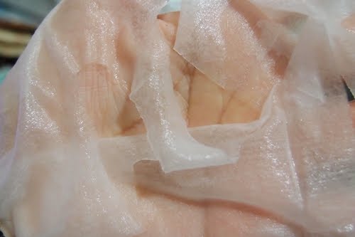取出的森果系列面膜紙是由白色珍珠膜固定著,無香味。