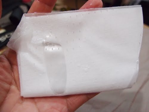 而面膜布是嚴選高親膚專利的天絲羽翼布膜,面膜布的質地是很薄的,所以取出的面膜就需由珍珠膜固定