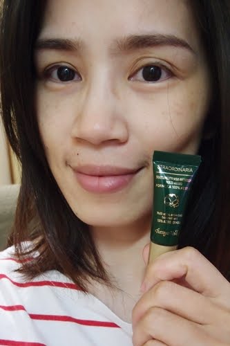 一開始使用非凡乳霜的用量是在雙頰、額頭、鼻子、下巴各點上一點點的乳霜,怕是會太滋潤就輕點一點點試試,雖然說是乳霜型保養品,但實際擦完後的質地感覺是輕盈的。
