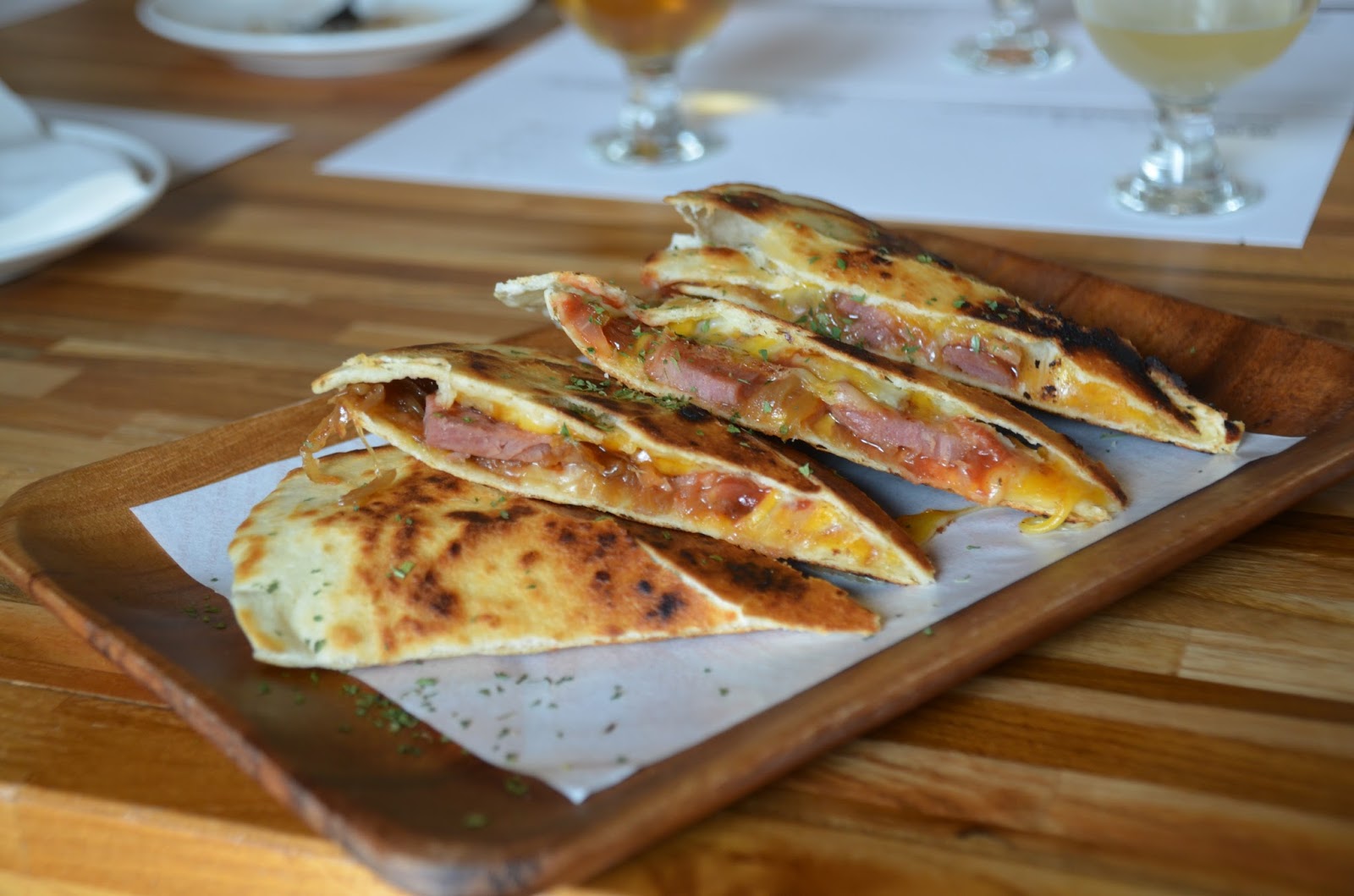 香酥的墨西哥餅皮,裡面包著奶油炒的洋蔥、莎莎醬、煙燻鴨胸肉、還有萬惡的乳酪絲~~~一口咬下真的是我的老天鵝阿!!