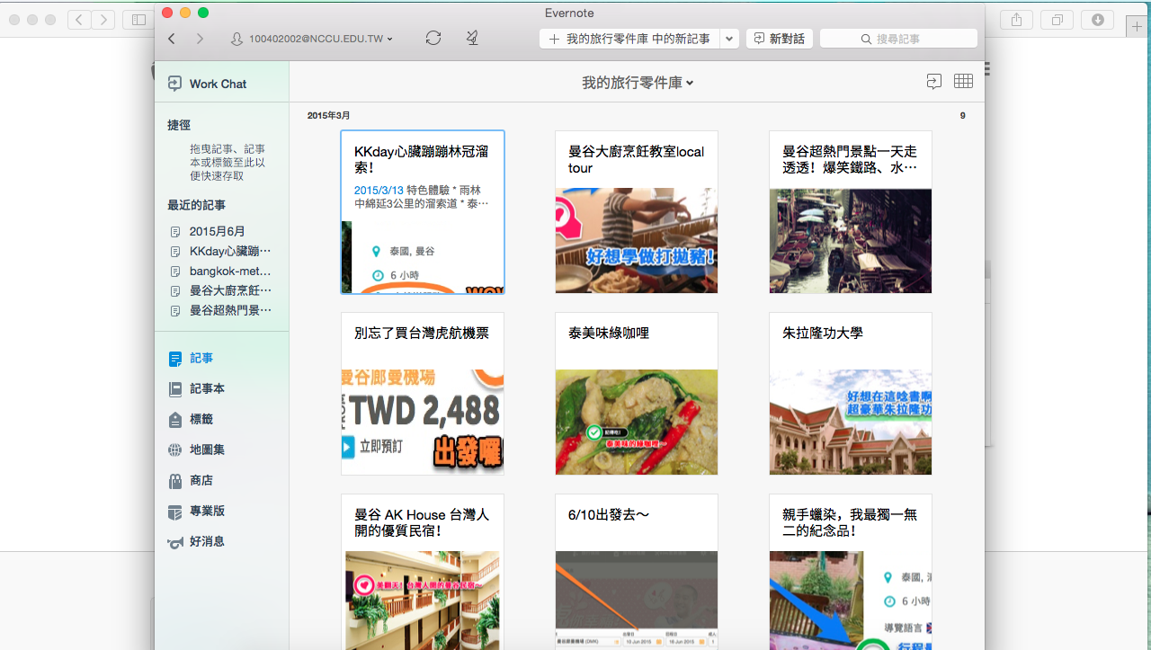 步驟五:同步Evernote後,就可以查看你所建立的混搭旅行零件庫的記事本囉!