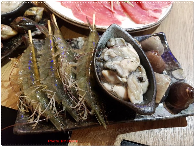 海鮮盤上有著滿滿飽滿的鮮蚵、還有蛤蜊、鯛魚片、以及活跳跳的鮮蝦
