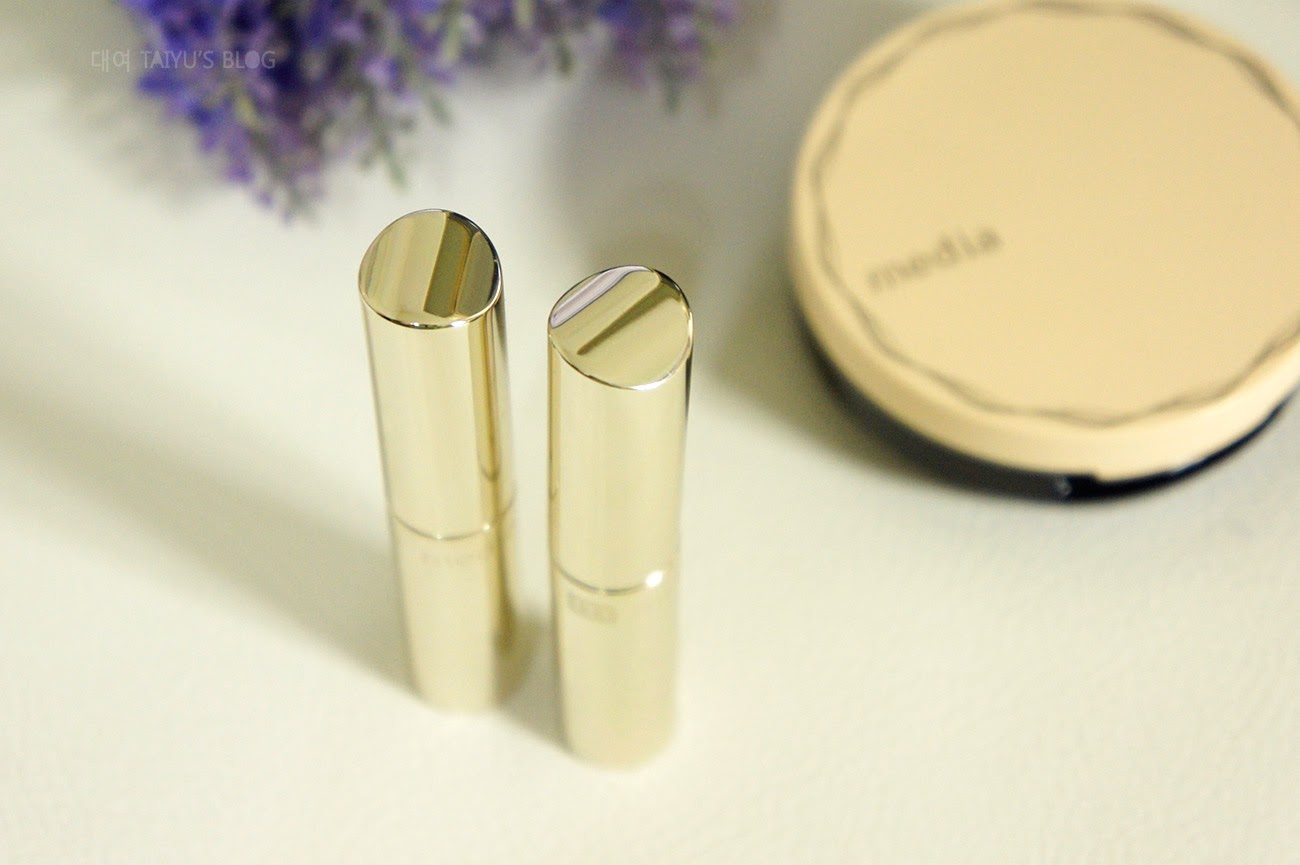 不用仔細看就可以看的出來兩色唇膏中都有細細亮粉,