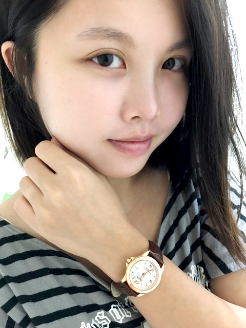 玫瑰金的錶框似乎也讓皮膚看起來較白皙,