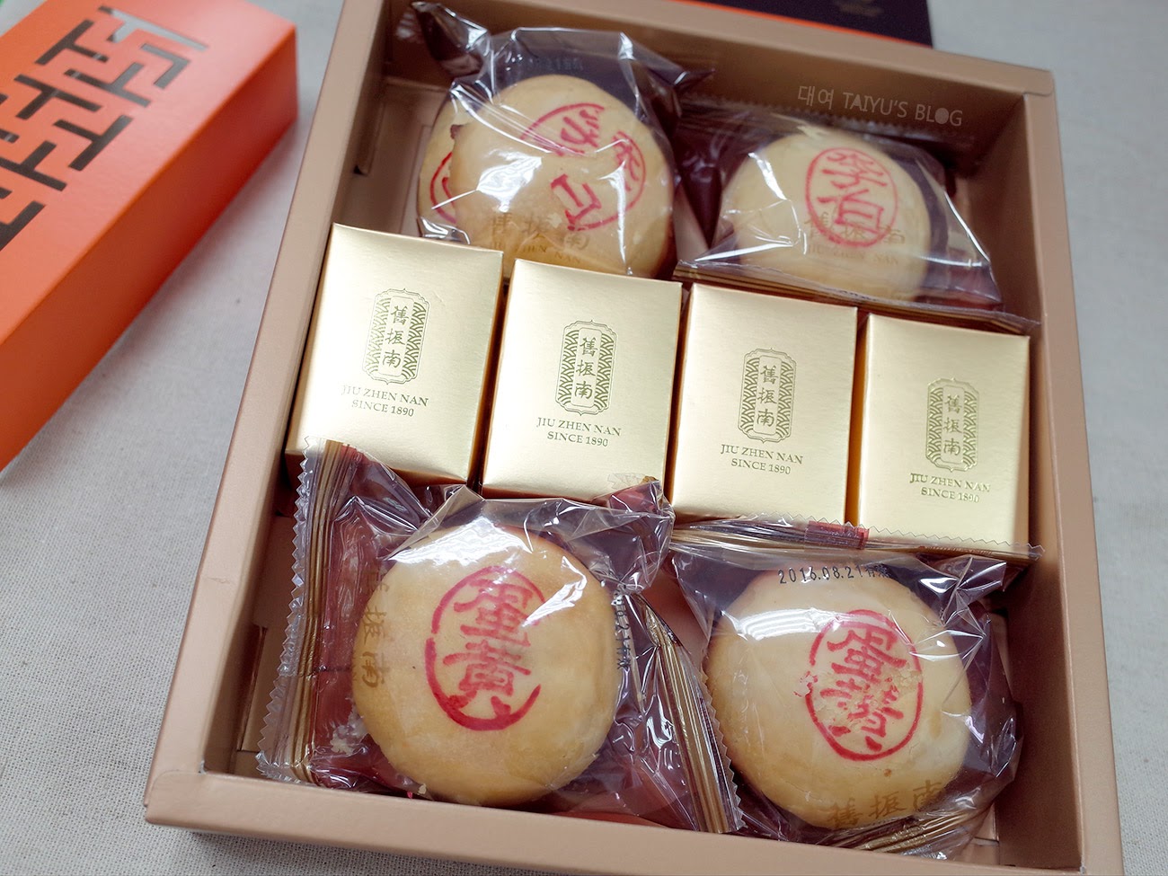 鳳梨酥有獨立的金色外包裝小盒子,