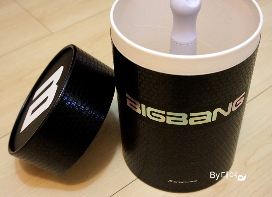 側邊印著BIGBANG金屬光感的圓筒 ![]() 還有一個B的貼紙封住蓋子以防滑落。 |