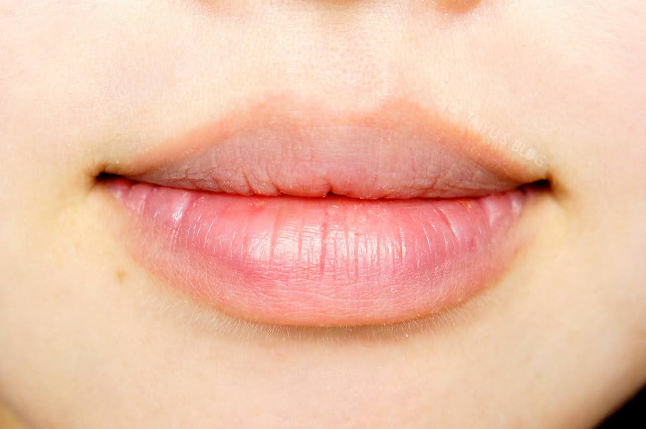蓋過粉底的嘴唇比較乾一點,但塗了唇膏後也沒有乾裂,