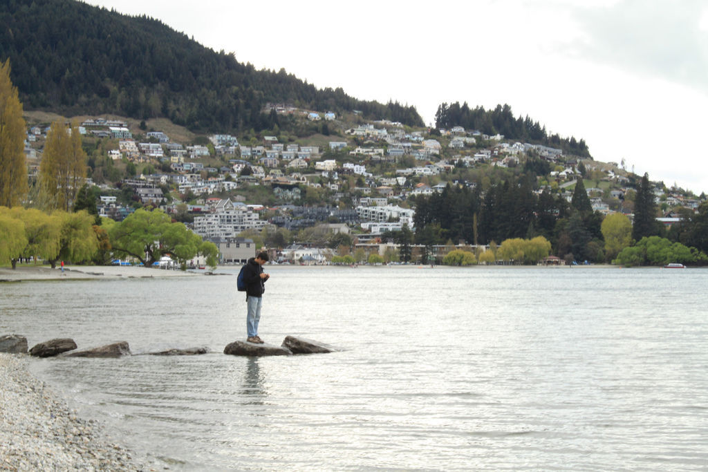 我一直想從對岸看還有我們住的YHA這一區,捧著中午剩下的印度餅來到這個公園,發現距離沒有我想中的近,建築物都被縮得好矮小。依山傍水、住宅高度集中的迷你聚落,是皇后鎮給我的最深刻印象。
