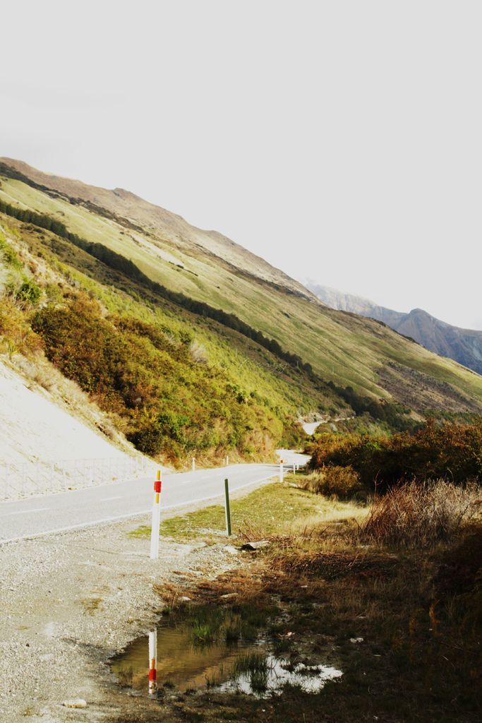 出Glenorchy後我才注意到路段起起伏伏,看不到對向來車,很難超車。不是我要超車,而是後面的老兄想超車卻找不到機會,偏偏我都開到100了,他還固守更高的時速,導致我呈現一種被壓車的狀態,